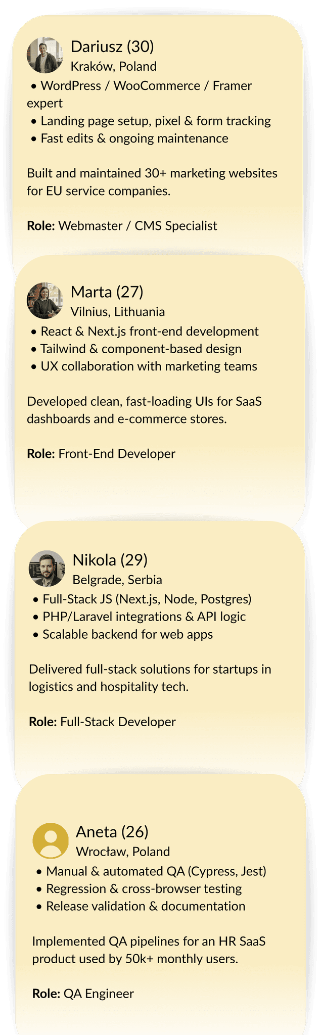 QA Engineers (manual & automated) — cost-effective quality gates for frequent releases.